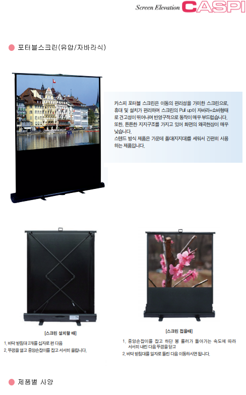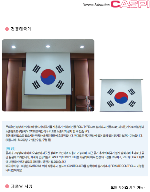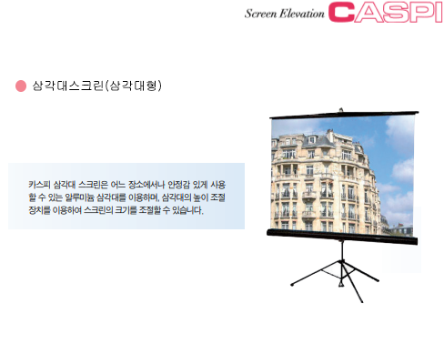 | 삼각대스크린(삼각대형) | TV영사대(LCD/PDP TV) | 전동 태극기 |