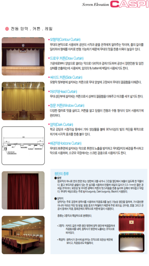 | 고급스크린 | 극장용 영사대 | 자동승강조명장치 |