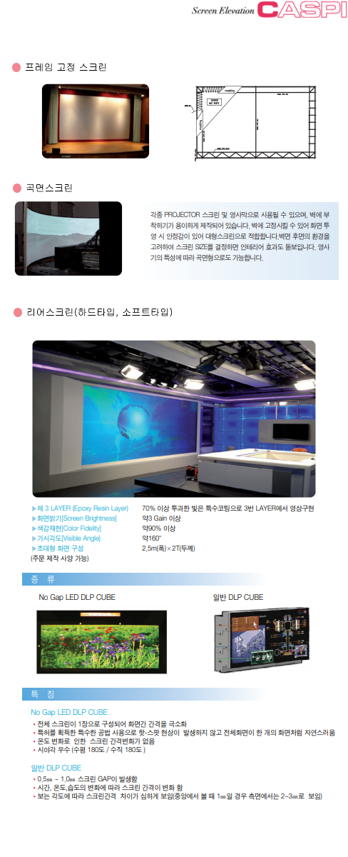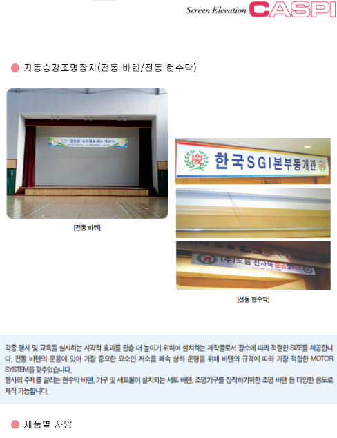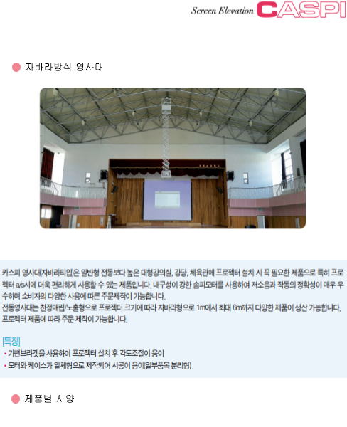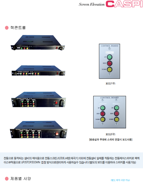 | 전동필름스크린(필름형) | 자바라방식 영사대 | 랙콘트롤 |