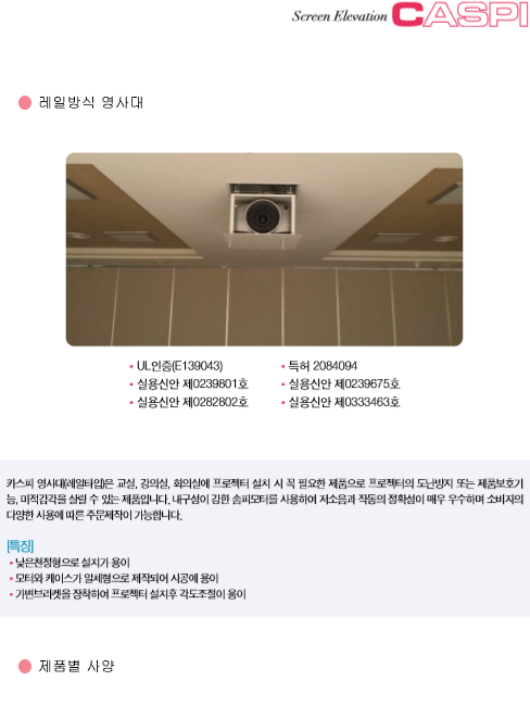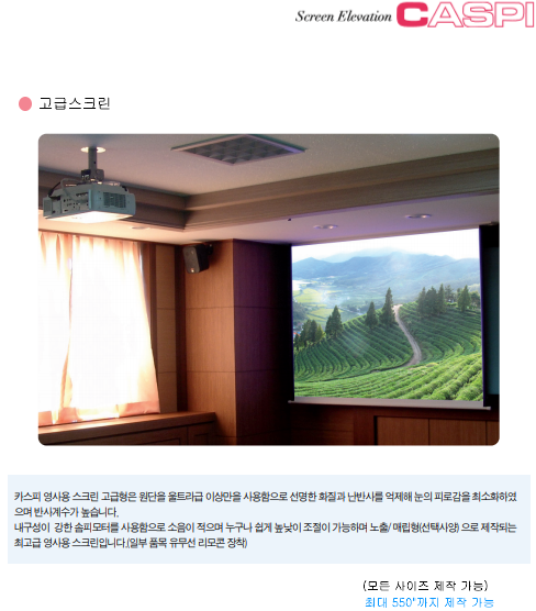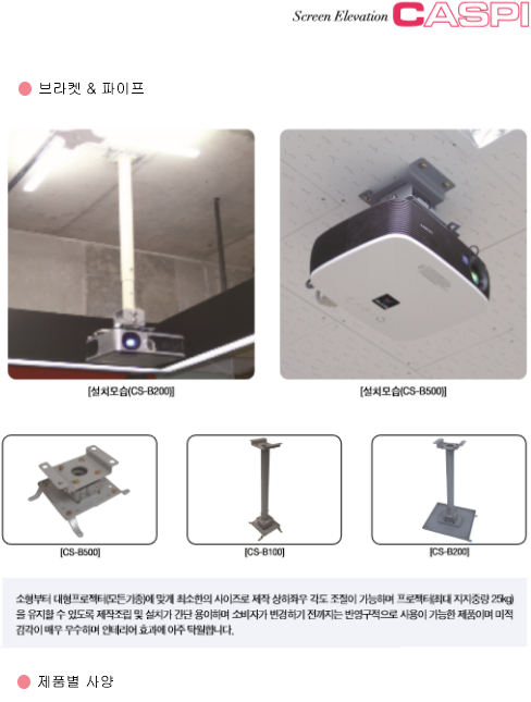 | 일반전동스크린(매트형) | 레일방식 영사대 | 브라켓 & 파이프 |